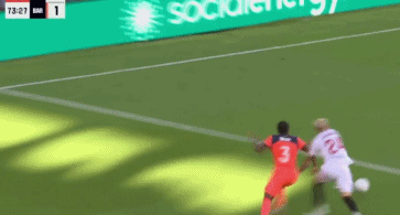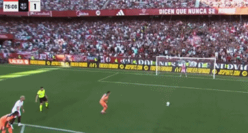 第89分钟,塞维利亚快速反击,卡尔莫纳突入禁区右脚低射破门,3比1!