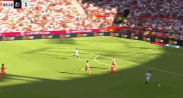 上半场补时第6分钟,佩德罗右侧斜传,禁区无人盯防的拉什福德顺势推射破门,1比2!
